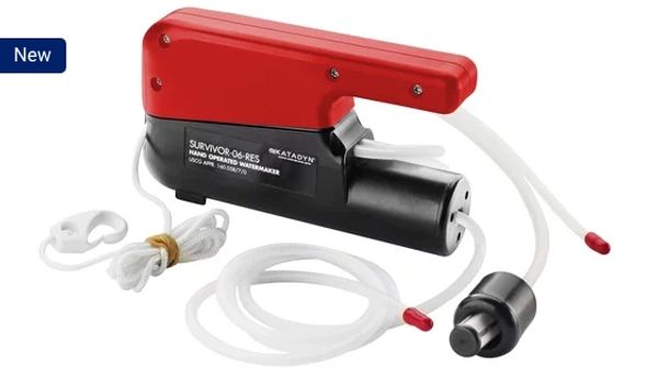 WAS the smallest hand-operated emergency desalinator in the world. Compact and lightweight with only 1.13 kg / 2.5 lbs.